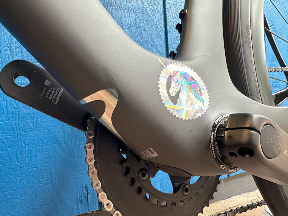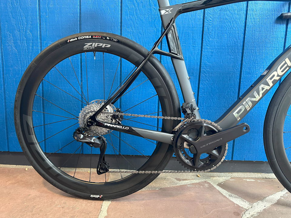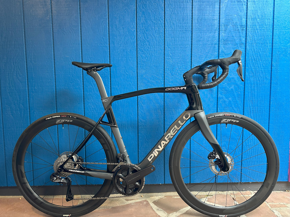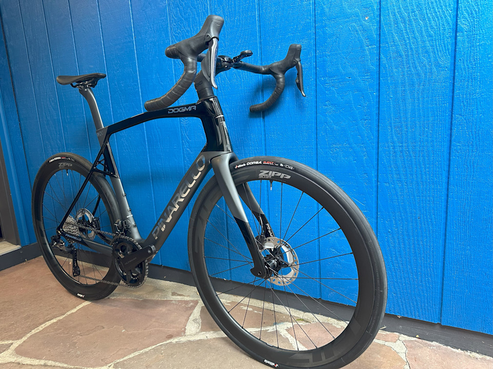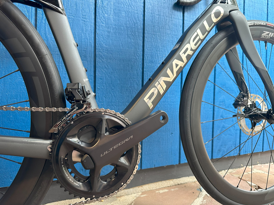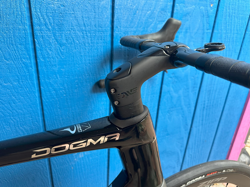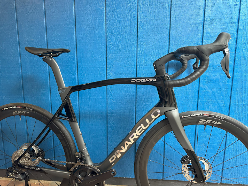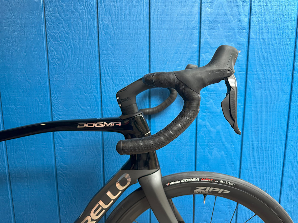 The Overlord matched this amazing Dogma X frame with the ENVE IN-Route Aero cockpit- they look like they were manufactured to go together with all the matte and glossy black. The Zipp wheels and Shimano power meter and components continue this gloss matte color play so the entire build became a thing of true beauty.